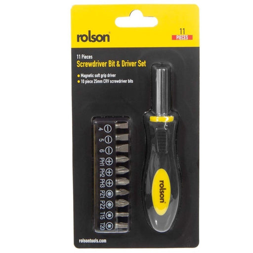 View full details11pcs Rolson Precision Magnetic Screwdriver Bit & Driver Slotted Phillips Set UK