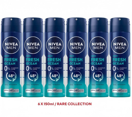 View full details6 x 150ml Nivea Men FRESH OCEAN 48h Deodorant body Spray 0% ALUMINIUM - RARE