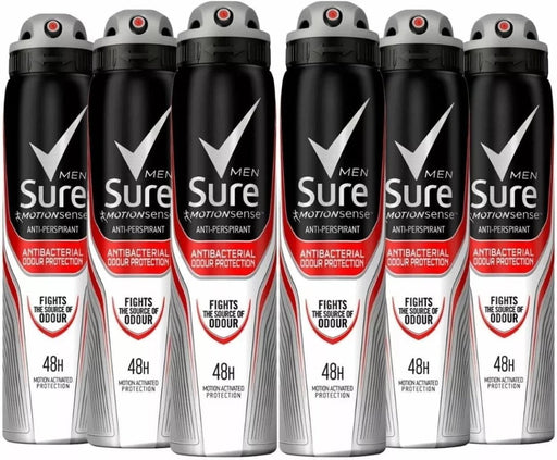 SURE🛡️ 6 x 250ml Sure Men Antibacterial Odour Protection Anti-Perspirant Deodorant Stay dry and confident with this bulk pack of 6 x 250ml Sur...
