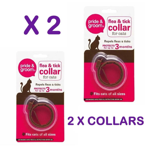 Pride&Groom2-Pack Cat Flea & Tick Collars - 6-Month Total Protection, Adjustable Stretch Fit (2 Collars) Key Features: Repels Fle...