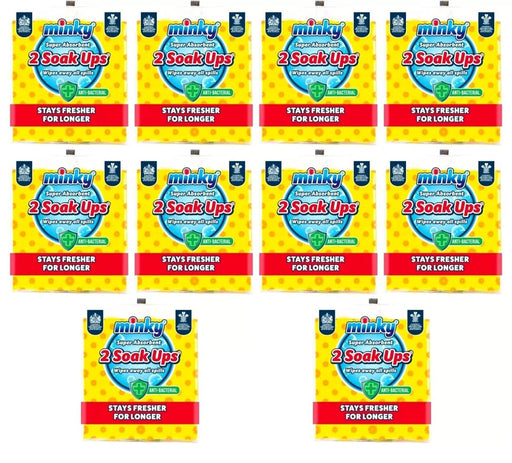 MinkyMinky Soak Ups Anti-Bacterial Cleaning Cloths - 20 Cloths (10 Packs of 2) Super Absorbent, Long-Lasting & Hygienic Cleaning for Yo...