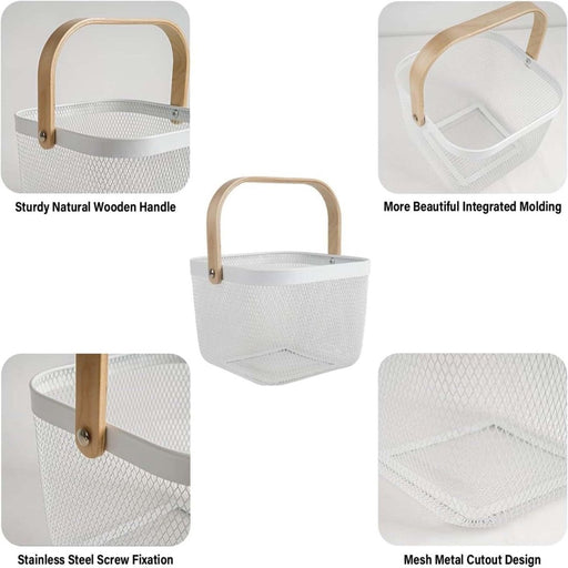 View full detailsMetal Wire Mesh Fruit Basket Bin Wooden Handle Kitchen Storage Organizer -Almond