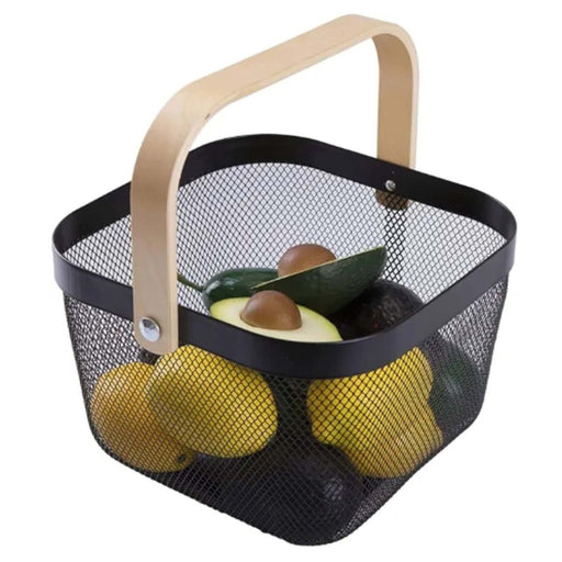 View full detailsMetal Wire Mesh Fruit Basket Bin Wooden Handle Kitchen Storage Organizer - Black