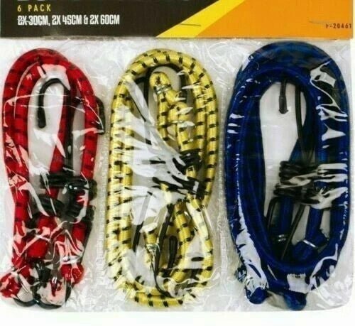 View full details6 Bungee Straps Cords Set With Hooks Elasticated Rope Cord Tie Car Bike Luggage