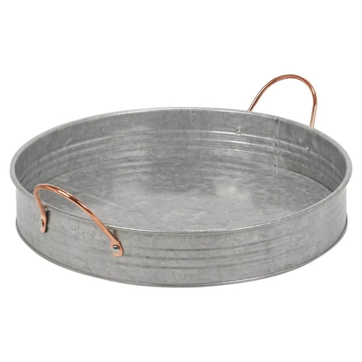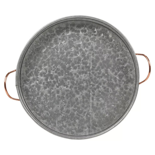 View full detailsLarge Round Galvanised Zinc Metal Rustic Serving Tray Platter w/ Copper Handles
