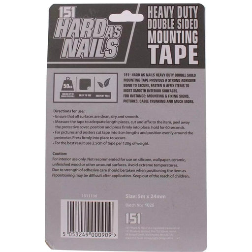 151HARD AS NAILS Heavy Duty Double-Sided Mounting Tape - 5m x 24mm The Strong, Solvent-Free Alternative to Nails - Holds Up To 50kg! ...