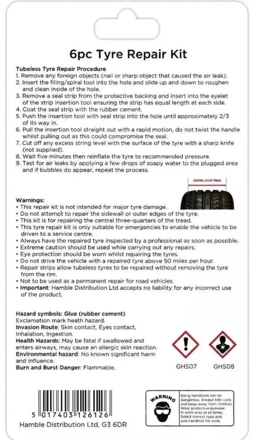 BlackspurBlackspur 6pc Tubeless Emergency Tyre Puncture Repair Plug Kit - Car, Motorcycle, & More Quick and Reliable Tyre Puncture Repairs ...