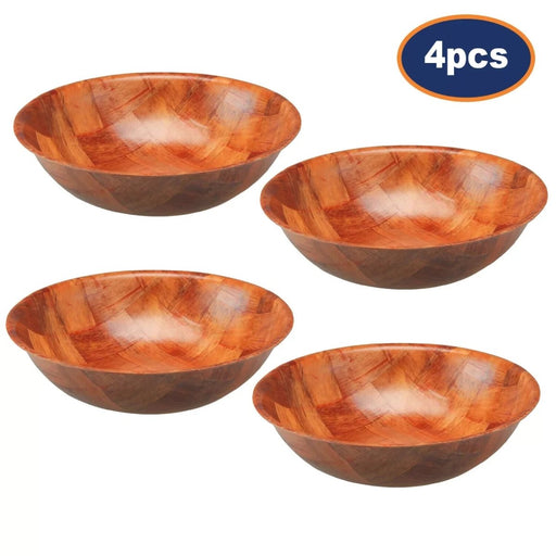 ApolloSet of 4 Round Wooden Woven Bowls | 25cm Wood Weave Kitchen Fruit Snack Salad Picnic Bowl Serve in Style with Natural Charm and Genero...