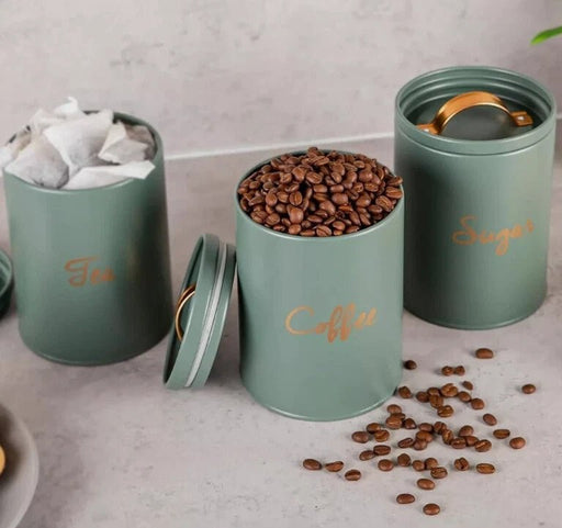 View full detailsIvy Tea Coffee Sugar Canisters Kitchen Storage Set Air Tight Lid Jars Tin