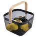 Metal Wire Mesh Fruit Basket Bin Wooden Handle Kitchen Storage Organizer - Black
